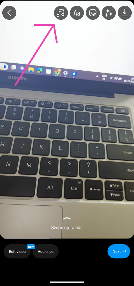 2. Adım:VurmakMüzik Notu simgesiDüzenleme sayfasının üstünde.