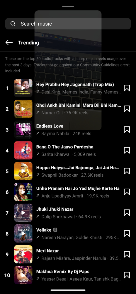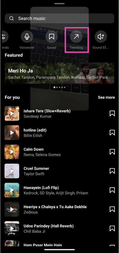 4. Adım:Seçintrend şarkısıListeden veya istediğiniz şarkıyı arayın.