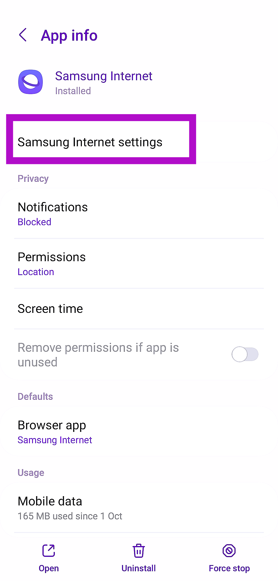 Tarayıcı ayarlarını değiştirin (Samsung Cihazları)