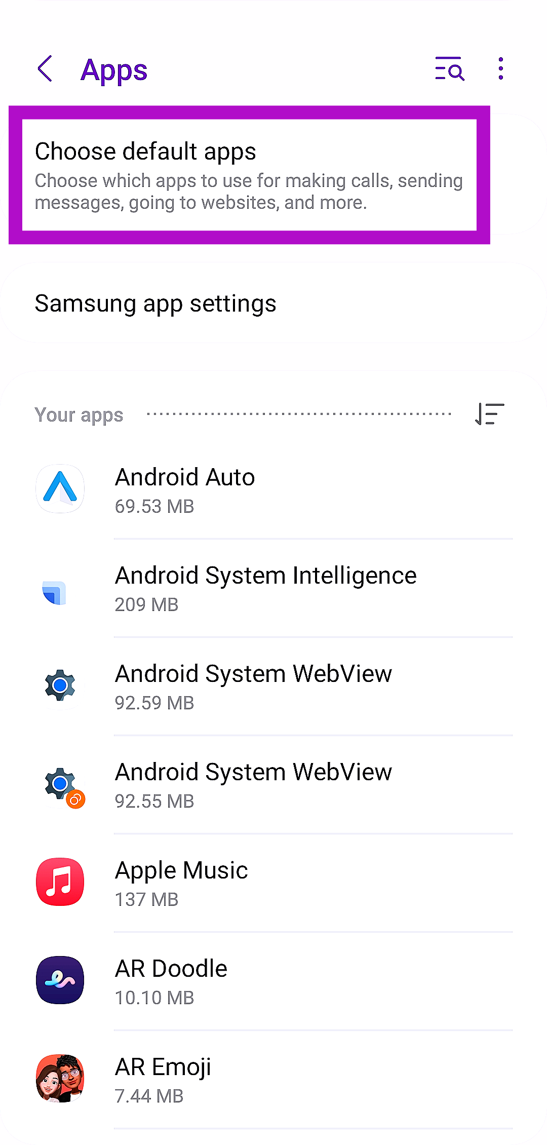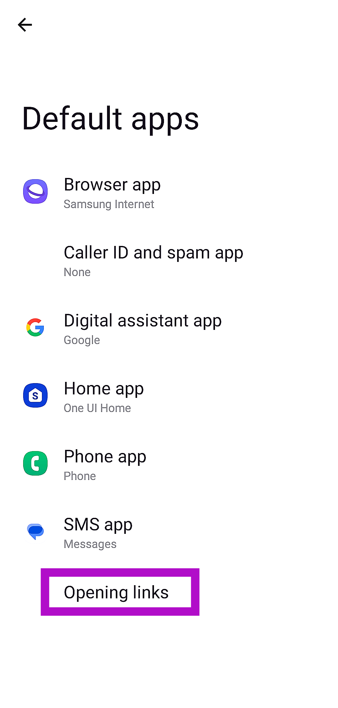 Android telefonunuzdaki uygulamalar desteklenen bağlantıları açamıyorsa,Ayarlar> Uygulamalar> Varsayılan uygulamaları seçinve desteklenen bağlantıları açmalarına izin verin.