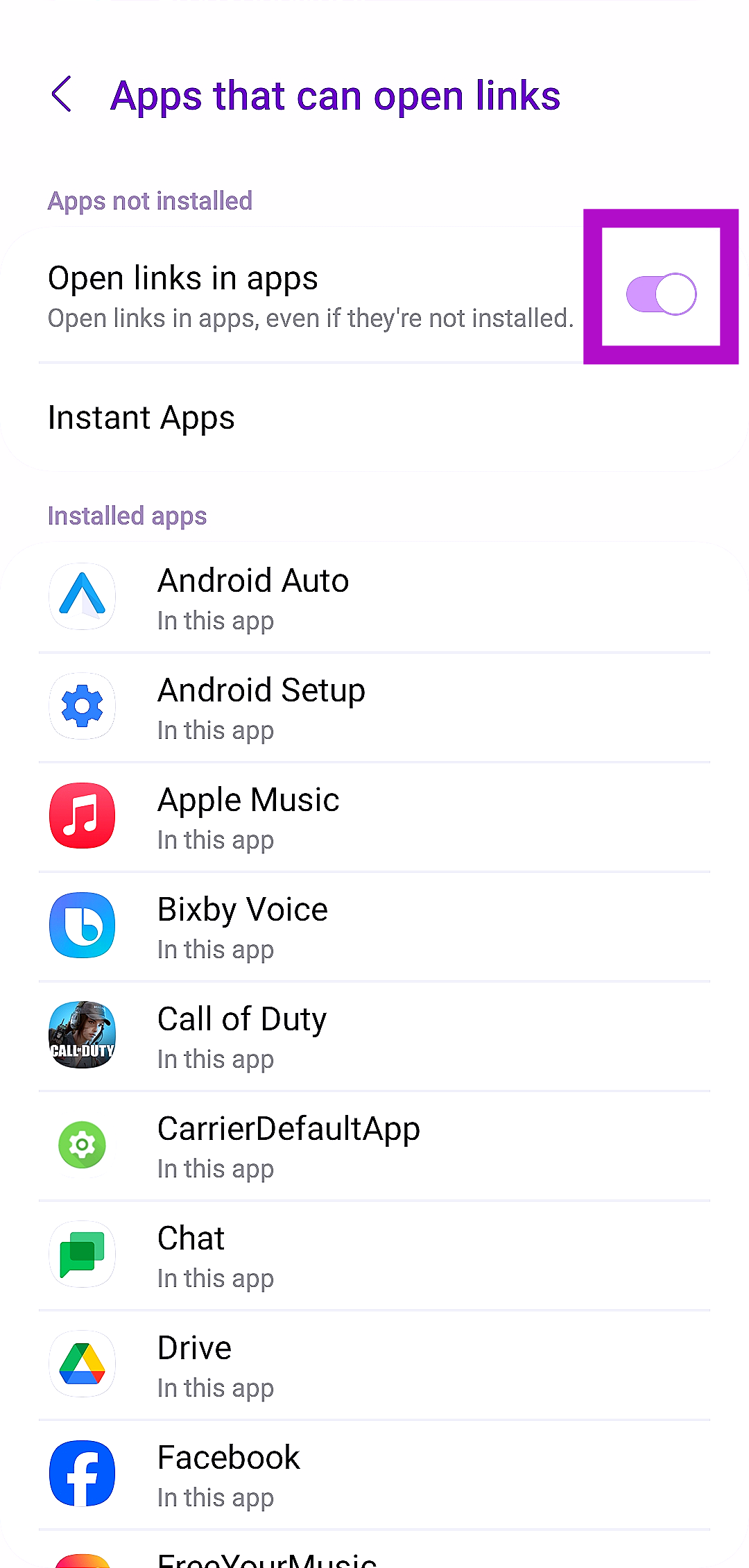 4. Adım:Geçiş anahtarını açınUygulamalardaki bağlantıları açın.