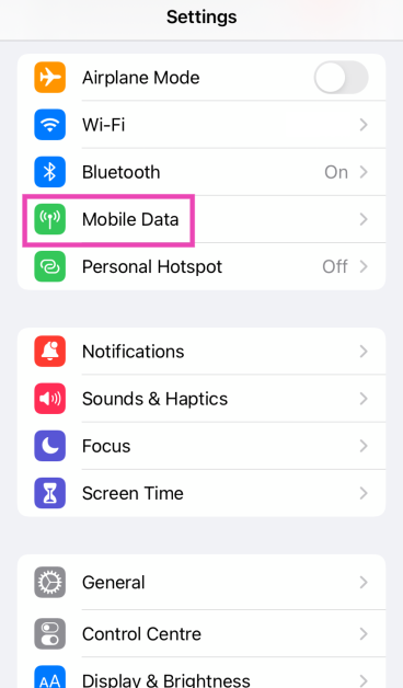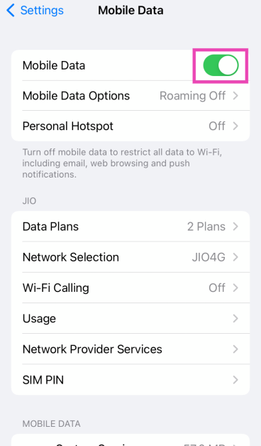 2. Adım:Dönüşkapalıyanındaki geçiş anahtarıMobil veriler.