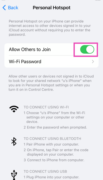 Kişisel hotspot'u kapatmak ve daha sonra tekrar açmak, çalışmasını engelleyebilecek küçük sorunları çözebilir. İşte nasıl yapabilirsiniz.