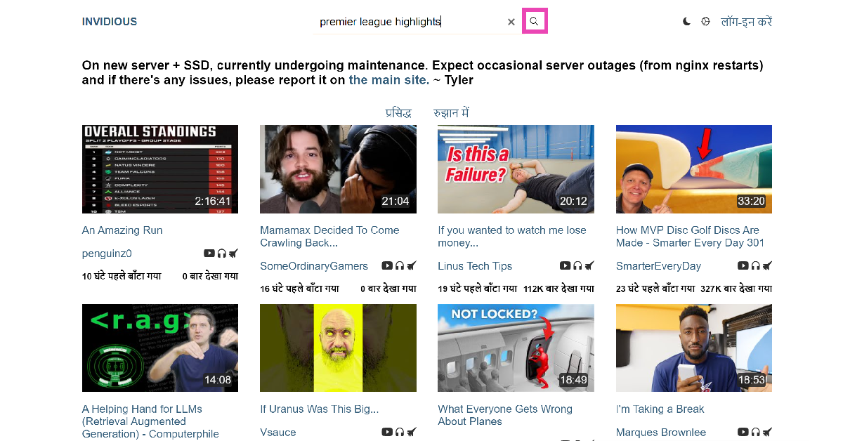 İçi, YouTube'a, yaş kısıtlı içeriği görüntülemek için bir Google hesabı kullanarak oturum açmanızı gerektirmeyen bir ön uç alternatifidir.