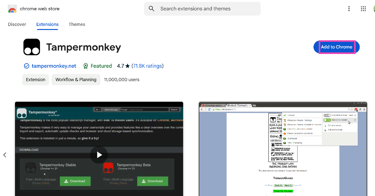 1. Adım: İndirmek.Tapermonkey uzantısıChrome web mağazasından.