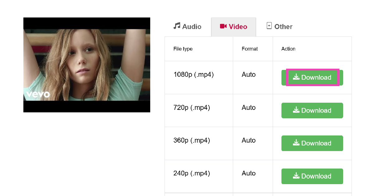 4. Adım:Geçişvideo sekmesiVe vurİndirmek.