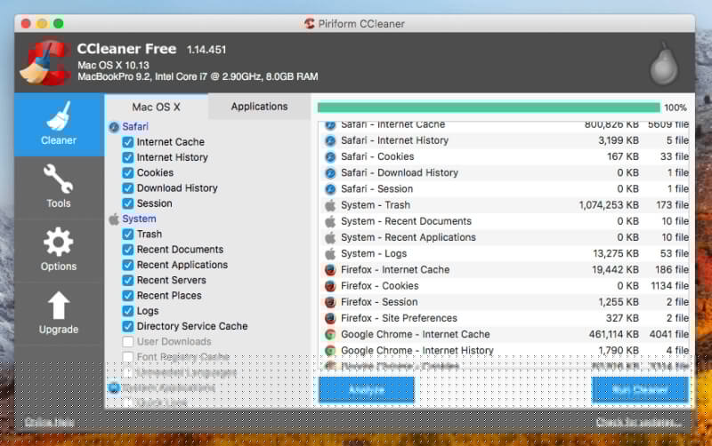 Mac için CCleanerMac'inizden geçici dosyaları kaldıracak ve uygulamaları kaldıran, başlangıç öğelerini kaldıran ve sürücüleri silen bazı araçlar içeren popüler bir uygulamadır.