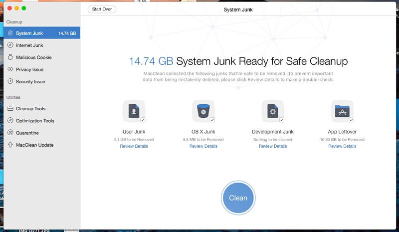 MacClean, Mac'inizi çeşitli şekillerde temizleyebilir: