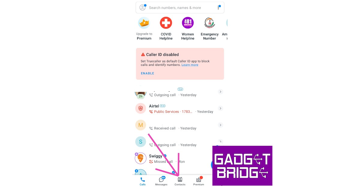 1. Adım:Truecaller'ı açve 'kişilere' gidin.