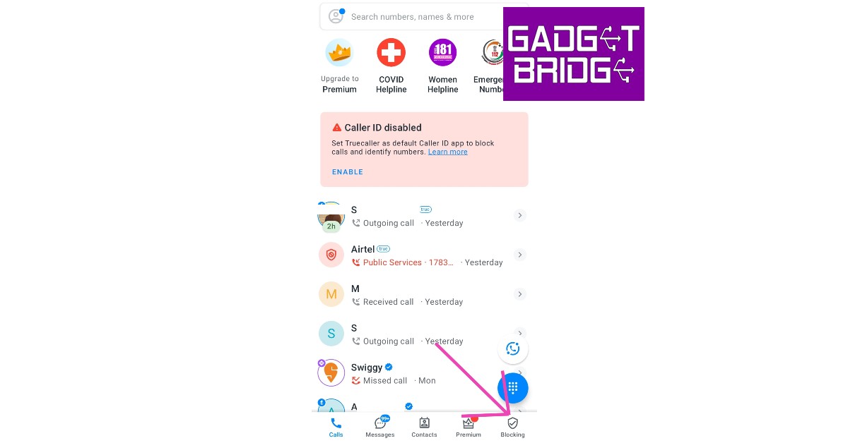 1. Adım:Truecaller uygulamasını açın ve 'Engelleme' için gidin.