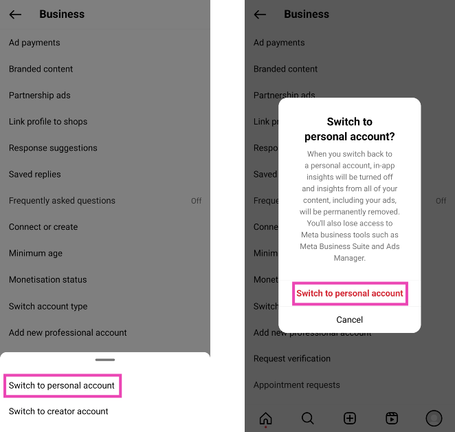 Hesap türünüzü işten kişisel veya yaratıcısına değiştirin