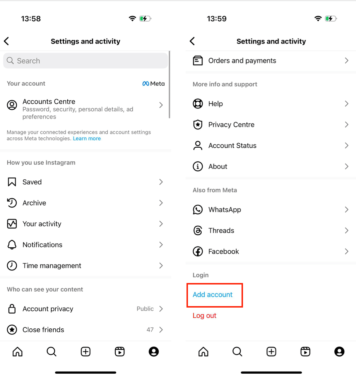 Başka bir Instagram hesabı nasıl eklenir
