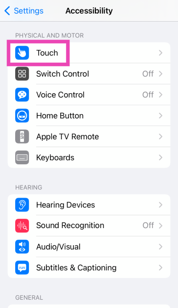 4. Adım:Yardımcı dokunuş arayın ve seçinYardımcı Dokunuş Yap.