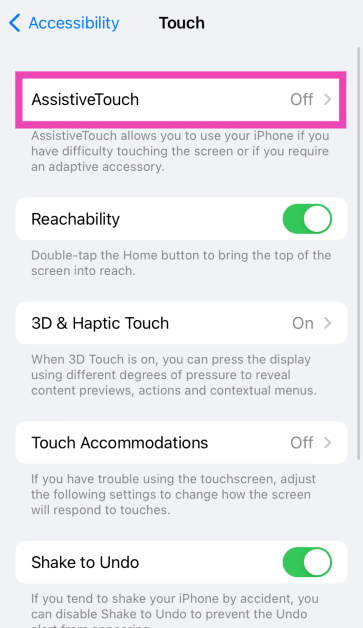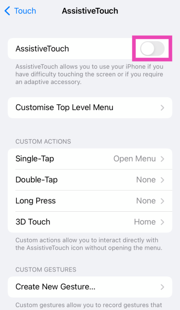 Adım 5:Açgeçiş anahtarıAssistiveTouch için.