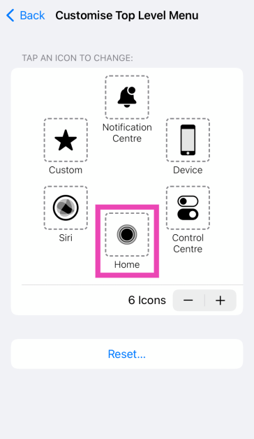 8. Adım:Yardımcı bir dokunuşun yalnızca Ana Sayfa düğmesi olarak çalışmasını istiyorsanız,Tek dokunaklıaltındaÖzel eylemlerve seçEv.