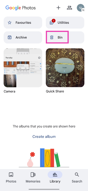 Google fotoğraflarında geri dönüşüm kutusunu bulun