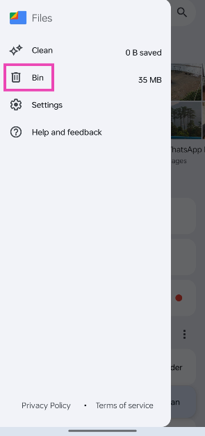 2. Adım:Aşağı kaydırın ve seçinBIN/Son zamanlarda silindi.