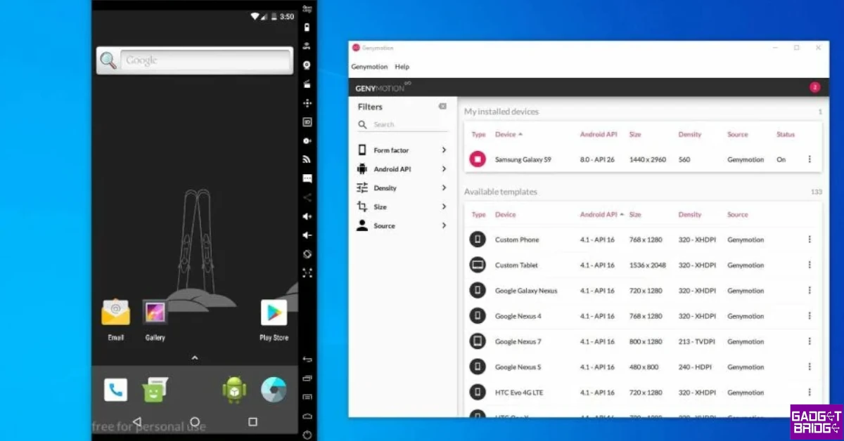 Genymotion'ı VirtualBox ile birlikte indirin ve ardından bir hesap oluşturun. Kişisel kullanım özelliğini seçin. Yüklendikten sonra, ekran çözünürlüğünü belirlemek için bir şablon listesinden seçim yapın, Android sürümünü ve kaynakları biriktirin ve istenen şablonu yükleyin. Artık Open Gapps simgesine tıklayarak PlayStore'u ekleyebilir ve ardından en sevdiğiniz oyunu indirip çalabilirsiniz.