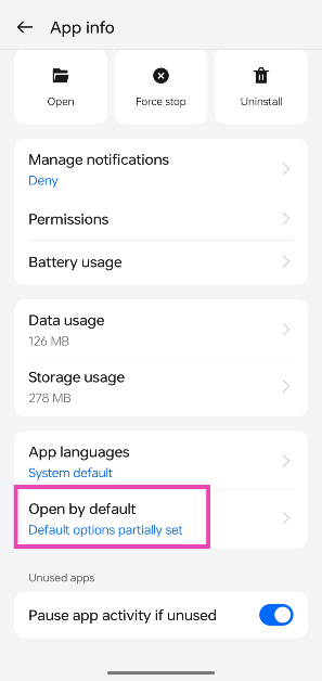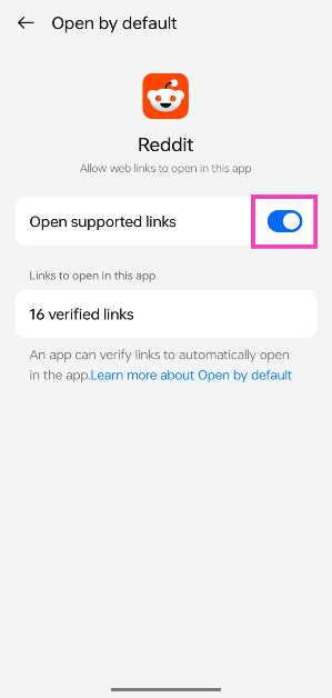 Gidip gelmekAyarlar> Uygulamalarve varsayılan olarak açmaktan kaçınmak istediğiniz uygulamayı seçin. 'Varsayılan olarak aç' konusuna dokunun ve 'Desteklenen Bağlantıları Aç' için geçiş anahtarını kapatın.