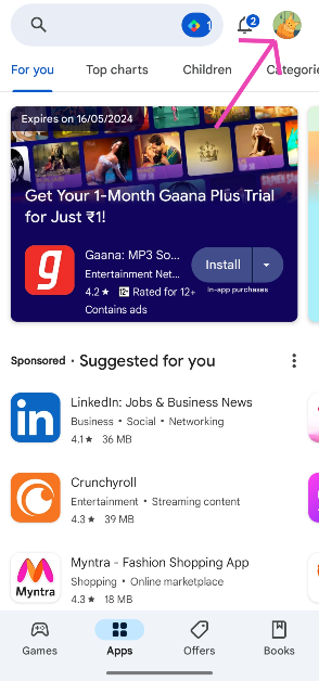 1. Adım:Google Play Store'u başlatın veProfil simgesiekranın sağ üst köşesinde.