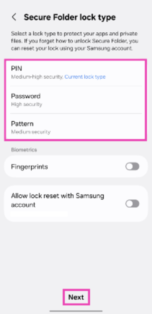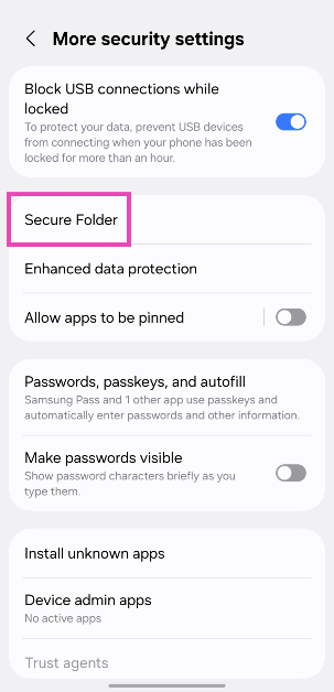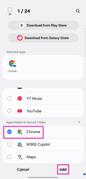 Güvenli klasörde Google Chrome'u kullanın (Samsung)