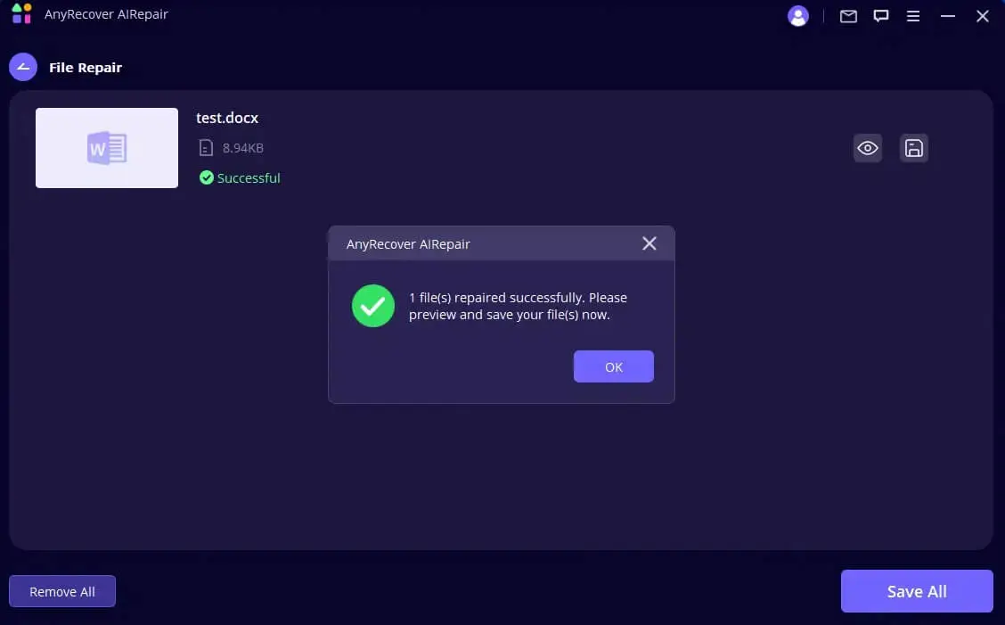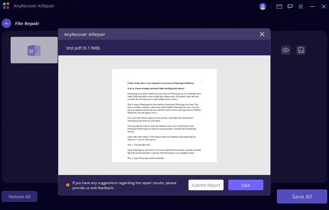 Bölüm 5. AnyRecover Airepair - En İyi Bozulmuş Dosya Fixer [Masaüstü Sürümü]