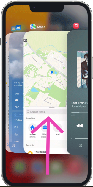 1. Adım: KaydırmakEkranın altından ve hareketi tutun. .Uygulama değiştiriciİPhone'unuzda hemen açılacak.