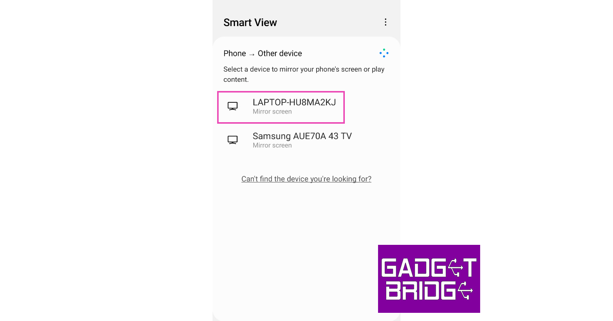 Adım 6:Dizüstü bilgisayarınıza bağlanmak için akıllı telefonunuzdaki yerel screencasting uygulamasını açın. Samsung cihazlarında bu uygulamaya denir 'Akıllı görünüm'Ve Hızlı Ayarlar panelinden erişilebilir.