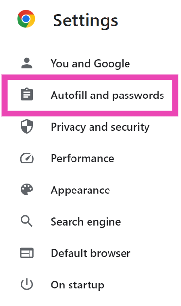 3. Adım:Gidip gelmekOtomatik doldurma ve şifreler.