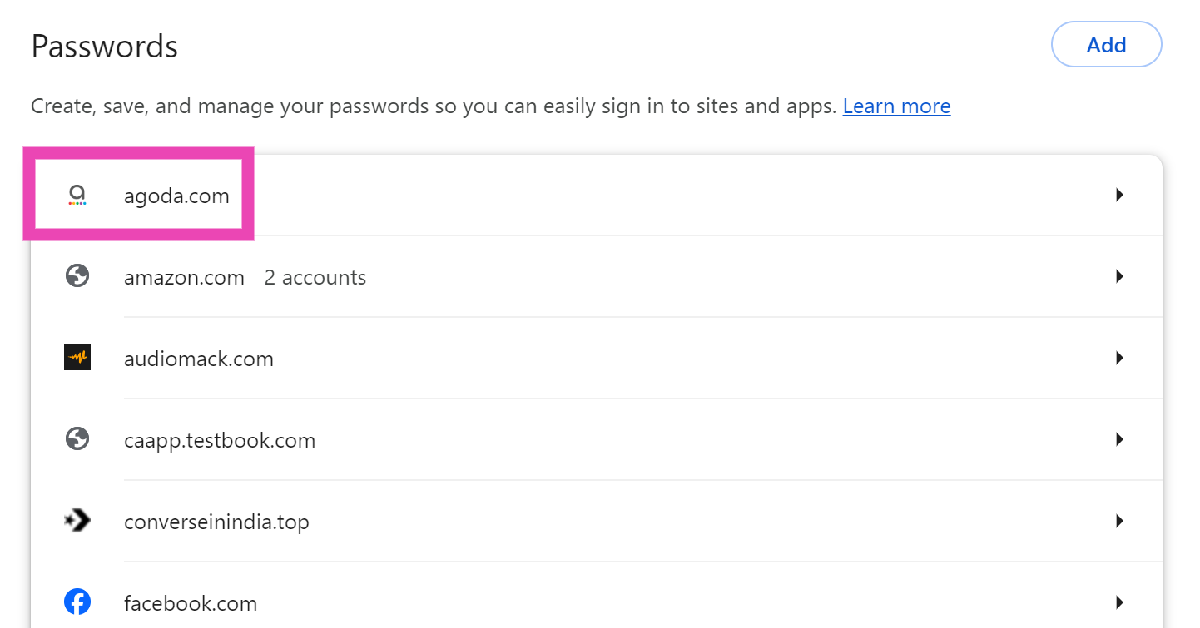 Adım 5:Önceki yöntemlerde belirtilen adımları izleyingörüşKaydedilen şifreleriniz.