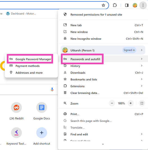 Chrome (PC) 'de Google Parola Yöneticisine erişmenin başka bir yolu