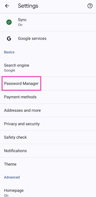 Chrome (Smartphone) 'da Google Parola Yöneticisine erişmenin başka bir yolu
