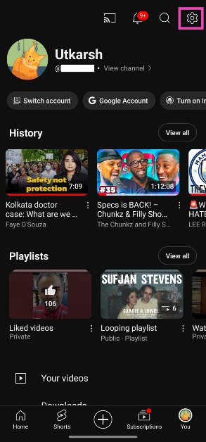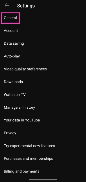 YouTube uygulamasını başlatın,Profil> Ayarlar> Genelve kısıtlı mod için geçiş anahtarını kapatın.