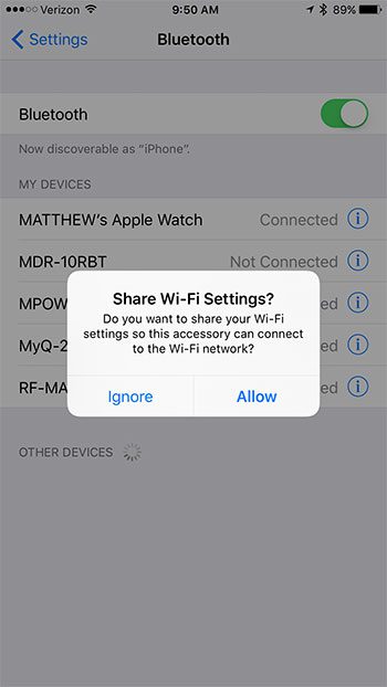 Adım 4: Akıllı telefonunuzdaki Bluetooth menüsünü açın, Bluetooth'u etkinleştirin, ardından MYQ garajına bağlanın. Wi-Fi ağınıza bağlanabilmesi için Wi-Fi ayrıntılarını cihazla paylaşmanız istenecektir.