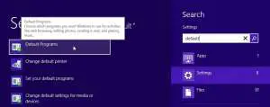 Adım 2: Ekranın sağ tarafındaki arama alanına varsayılan olarak yazın, ardındanVarsayılan programlarSonuçlar listesinde seçenek.