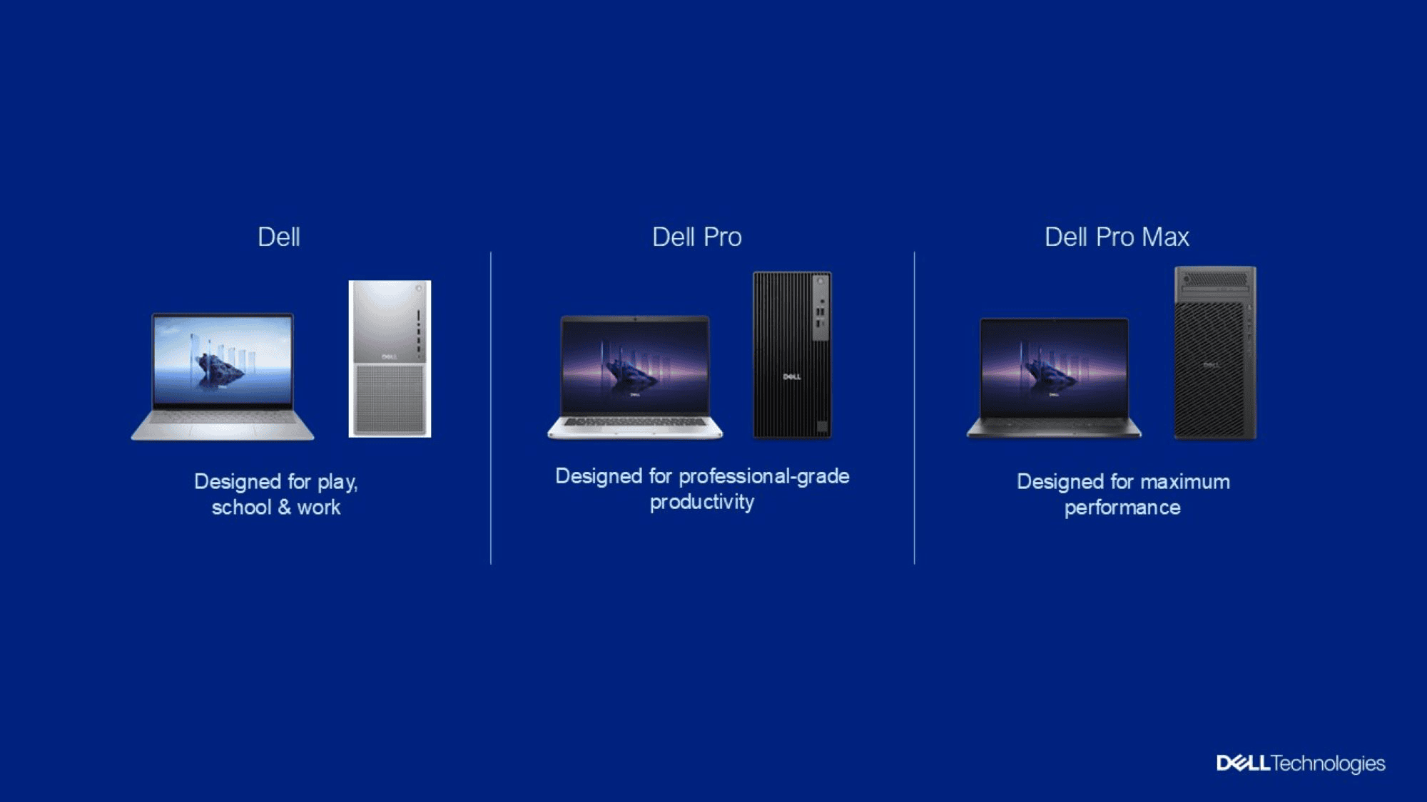 Hattın üstünde, “Pro Max” maksimum performansı ifade eder. Bunlar, Dell'in video düzenleme, 3D rending ve AI geliştirme gibi görevler için tasarlanmış en güçlü dizüstü bilgisayarları ve masaüstü bilgisayarlarıdır. Onları Apple'ın Mac Studio veya üst düzey MacBook Pro yapılandırmalarının Dell eşdeğeri olarak düşünün.