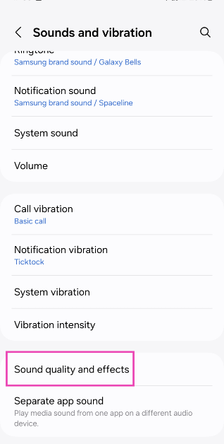 2. Adım:Aşağı kaydırın ve seçinSes kalitesi ve efektleri.