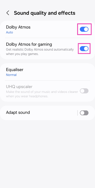 3. Adım:Geçiş anahtarlarını açınDolby AtmosVeOyun için Dolby Atmos.