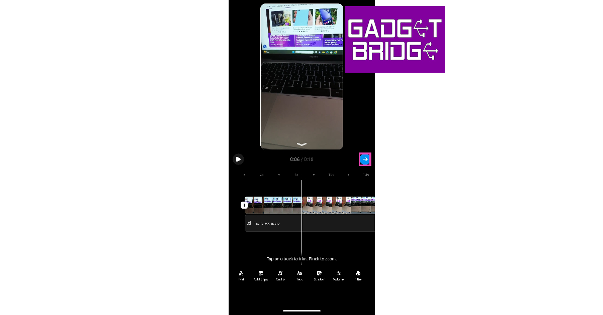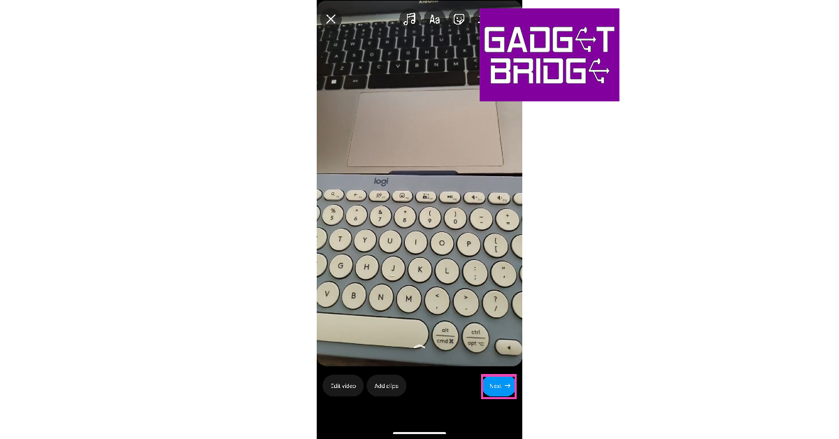 Adım 5:Bir sonraki sayfada videoyu düzenleyin ve metin, müzik, çıkartma veya filtreler ekleyin. Makaranıza konum ekleyebilirsiniz. VurmakSonrakiişiniz bittiğinde.