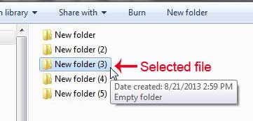 Basitçe basınF2Dosyayı seçtikten sonra klavyenizde anahtar. Bu, Windows Gezgini penceresindeki seçilen dosyalarda veya masaüstünüzdeki seçilen dosyalarda kullanılabilir. İlk başta böyle görünmeyebilir, ancak bu yöntemi çok fazla Windows 7 dosyası veya klasör olarak yeniden adlandırmak için kullanmaya başlarsanız bu size çok fazla hayal kırıklığı ve zaman kazandıracaktır.