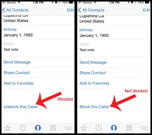 Adım 3: Ekranın altına gidin ve her ikisini de yazan düğmeyi arayınBu arayanı engelleveyaBu arayanın engelini kaldır. Eğer diyorsaBu arayanı engelledaha sonra temas engellenmedi. Eğer diyorsaBu arayanın engelini kaldırdaha sonra temas engellendi.