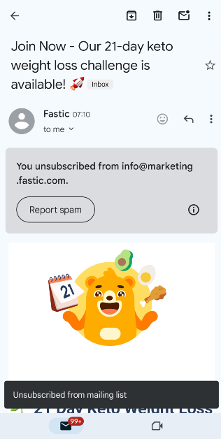 Abonelikten çıkma düğmesine dokunmak iki şey yapabilir. İşlemi tamamlamak için gönderenin web sitesine/uygulamasına yönlendirileceksiniz veya Gmail, uygulamadan ayrılmadan sizi posta listesinden çıkaracaktır. İkincisi, güncellemelerinden abonelikten çıkma e -posta isteği talep eden hizmetler için çalışır. Gmail, bu e -postayı sizin adınıza otomatik olarak oluşturur ve gönderir.