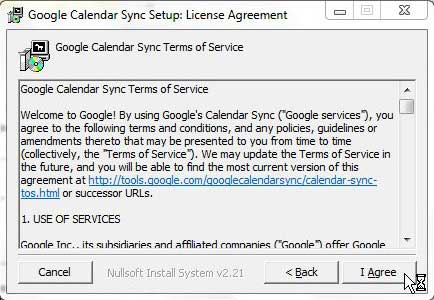 Adım 3: İndirilen dosyayı çift tıklayın, tıklayınKoşmaksonra tıklayınKabul ediyorumGoogle Takvim Senkronizasyon Lisans Sözleşmesi penceresindeki düğme.