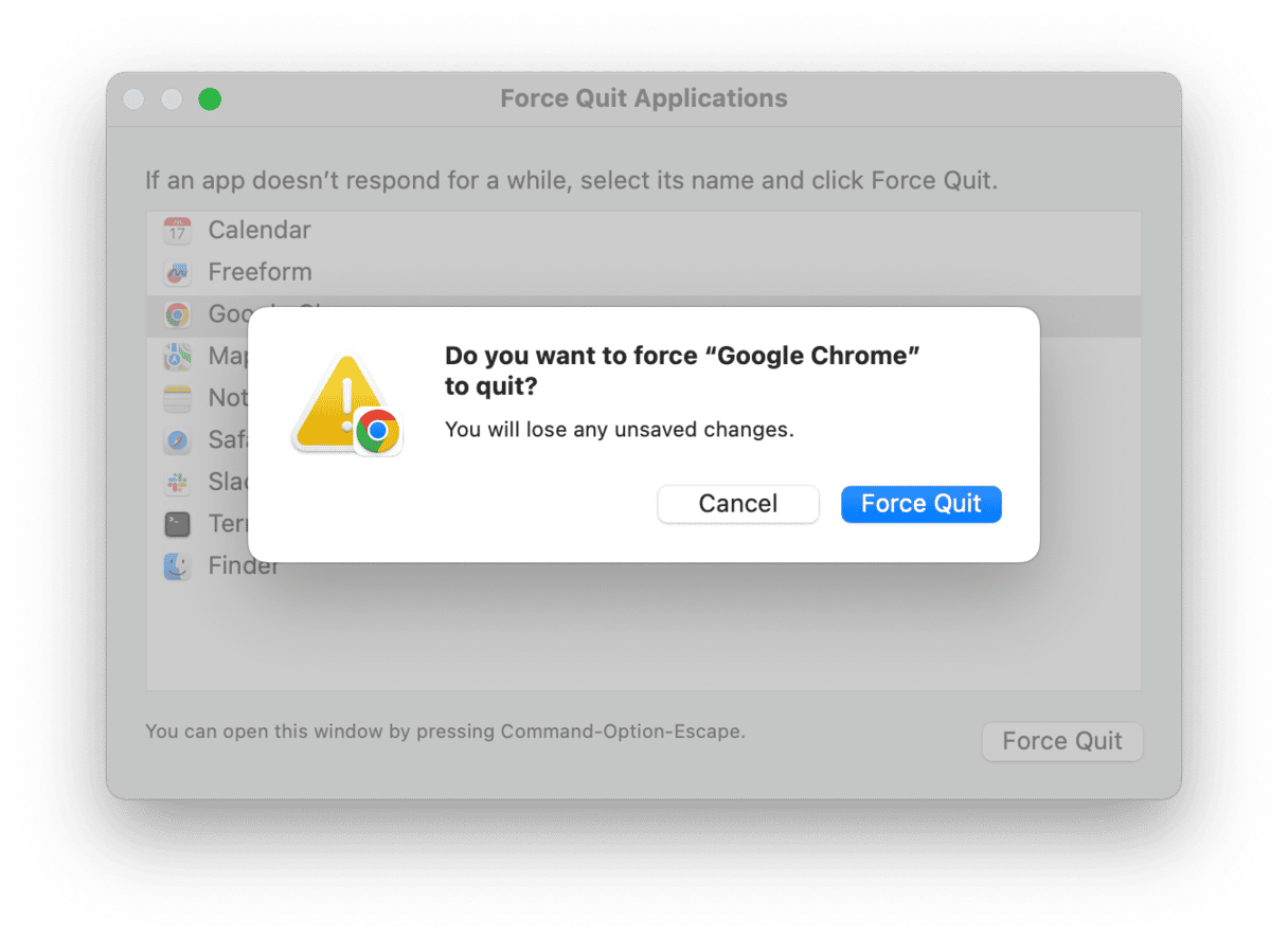 - Google Chrome'u seçin ve Çıkış'ı zorlayın.