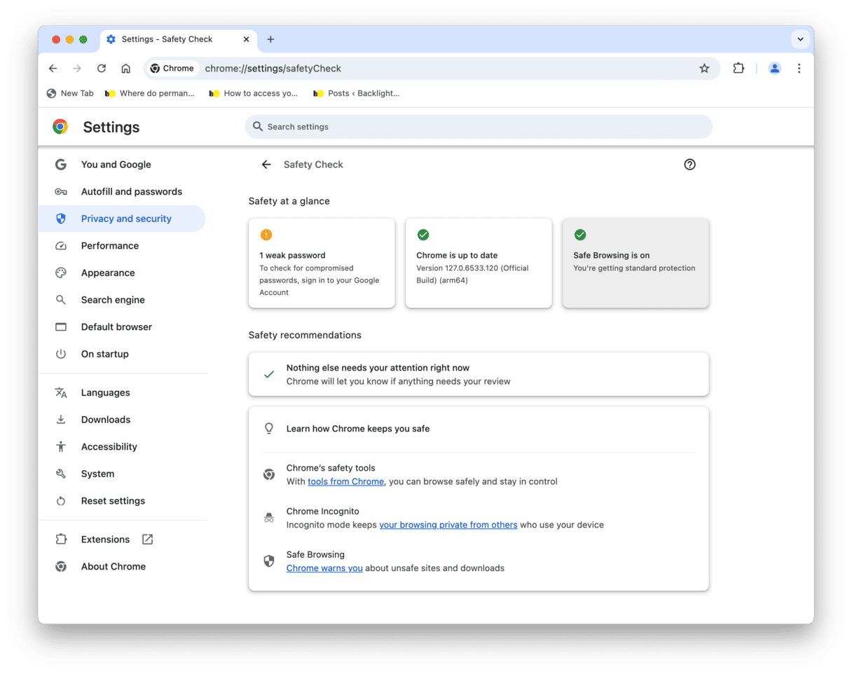 Google Chrome'un en son sürümünde Güvenlik Kontrolü adlı bir özelliği var. İşte nasıl kullanılacağı: