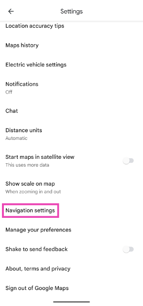 4. Adım:Aşağı kaydırın ve seçinNavigasyon Ayarları.