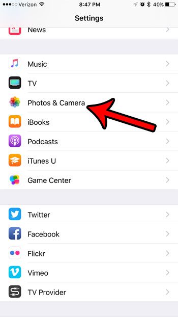 2. Adım: Aşağı kaydırın veFotoğraflar ve Kameraseçenek.