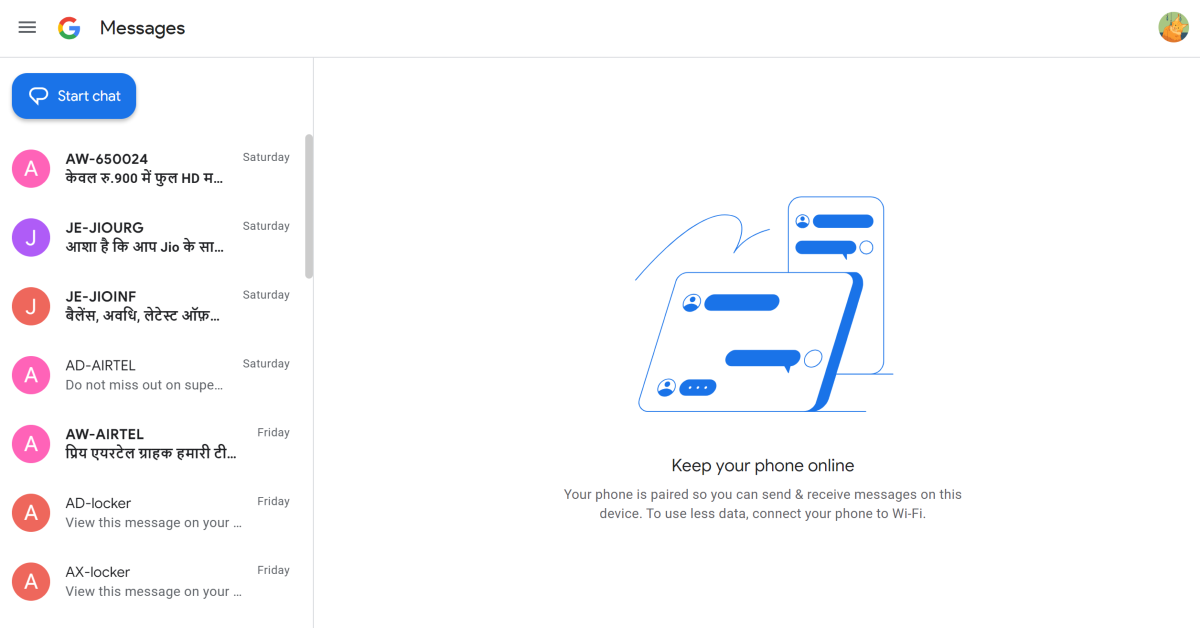Bu yıl Whatsapp onu yükseltticihaz eşleştirme oyunuAyrıca, kullanıcıların bir seferde maksimum 6 cihazı hesaplarına bağlamasına izin verir. Birden fazla cihazı Google mesajlarına bağlayabilirsiniz, ancak herhangi bir zamanda yalnızca bir bilgisayarda kullanabilirsiniz. Uygulamanın web portalının çalışması için akıllı telefonunuzun aktif olması gerekir. Web için mesajların henüz RCS desteği yok. Web için mesajlar kullanarak bir metin gönderdiğinizde SMS için standart taşıyıcı ücretleri hala uygulanacaktır.