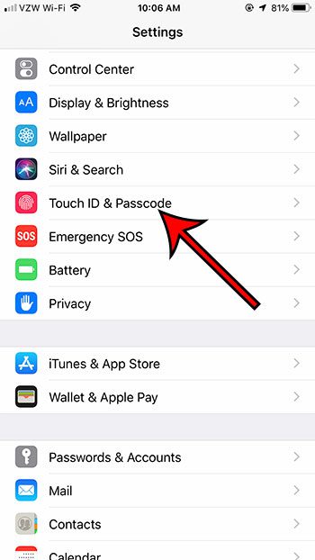 2. Adım: Aşağı kaydırın veDokunma Kimliği ve Parolaseçenek.