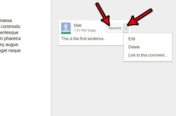 Yorum belgede bulunduktan sonra,ÇözmekYorumu reddetmek için düğme veya üç nokta ile simgeye tıklayabilirsiniz.Düzenlemek-Silmek, veyaYorumla bağlantı.